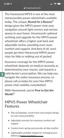 HOOVEROUND MPV5 Power Wheelchair see pictures has New Two Batteries and new tires and wheels and castors New seat and comes with battery charger and have all paperwork 1,200.00 text for more info