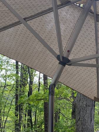 Patio Umbrella with iron base (8.5 foot wide) - $80 (Fayette)
