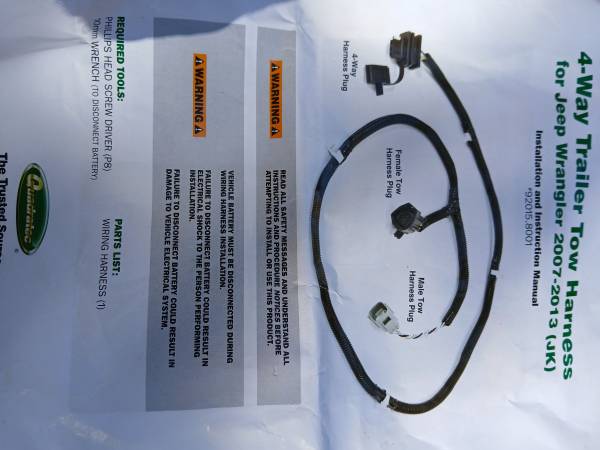 4 way trailer tow harness for Jeep Wrangler 2007 through 2013 JK