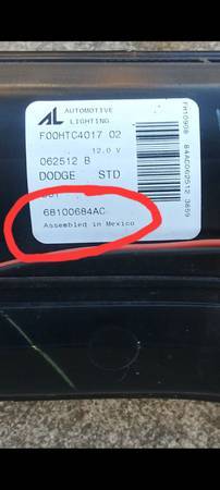 This is a used piece. There will be possible scratches and normal wear. Has backup lighting. The red light does NOT illuminate. Came off a 2013 Dodge Dart, but does fit other Dart years. Wiring harnesses are included, just as you see in the picture for the rear backup lights. Please refer to pictures for part number circled in red. Zoom in to see details of the light. Cash only.